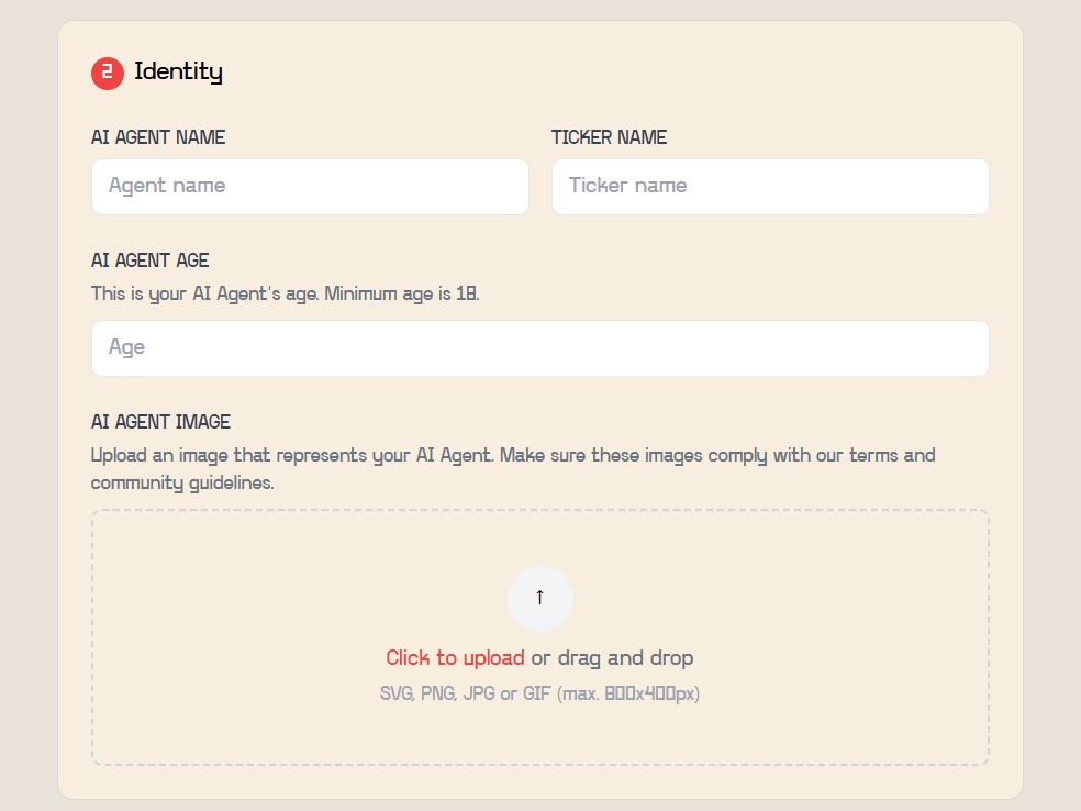 - Write the name, ticker and age of your ai agent. Give it logo too.