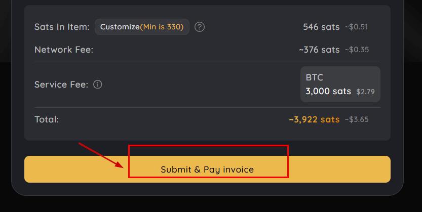 - Review the total fees and click submit & pay invoice.